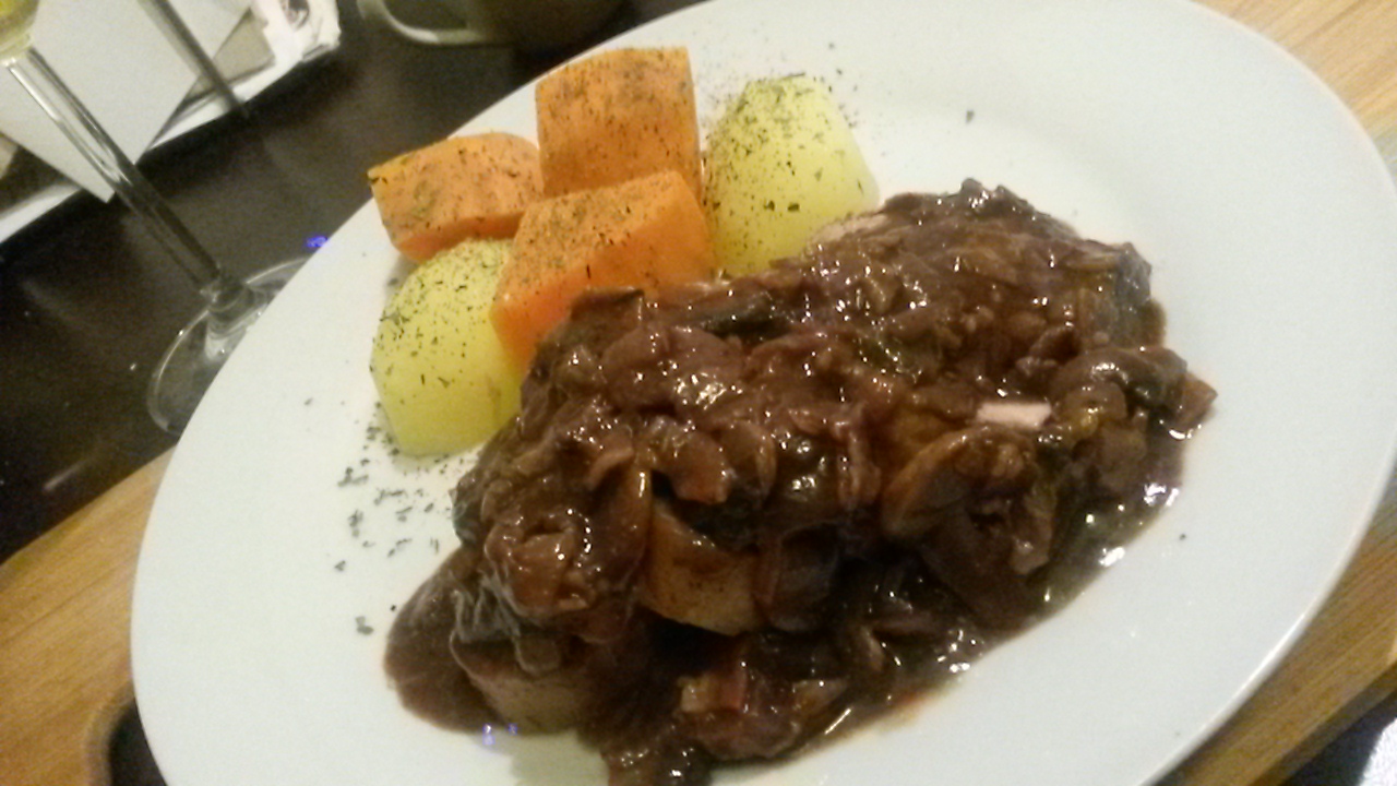 The cooler weather inspires me to do more “heavier” cooking, particularly with potatoes and meat. Tonight I experimented with a Hunter’s sauce with mushrooms, spring onion and wine to go beautifully with juicy, soft pork medallions. I cooked this for myself (as I’m no master of sauces and I didn’t want to guinea pig this on anyone 🙂 )