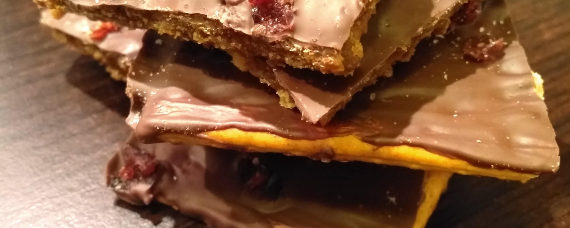 I came across this recipe a while ago online, and there are so many of them as well, but I did not feel that I could do this blog justice, if I did not try to put my own spin on it. So here we go: Chocolate Caramel Crack(ers) with cranberries and pink Himalyan salt.