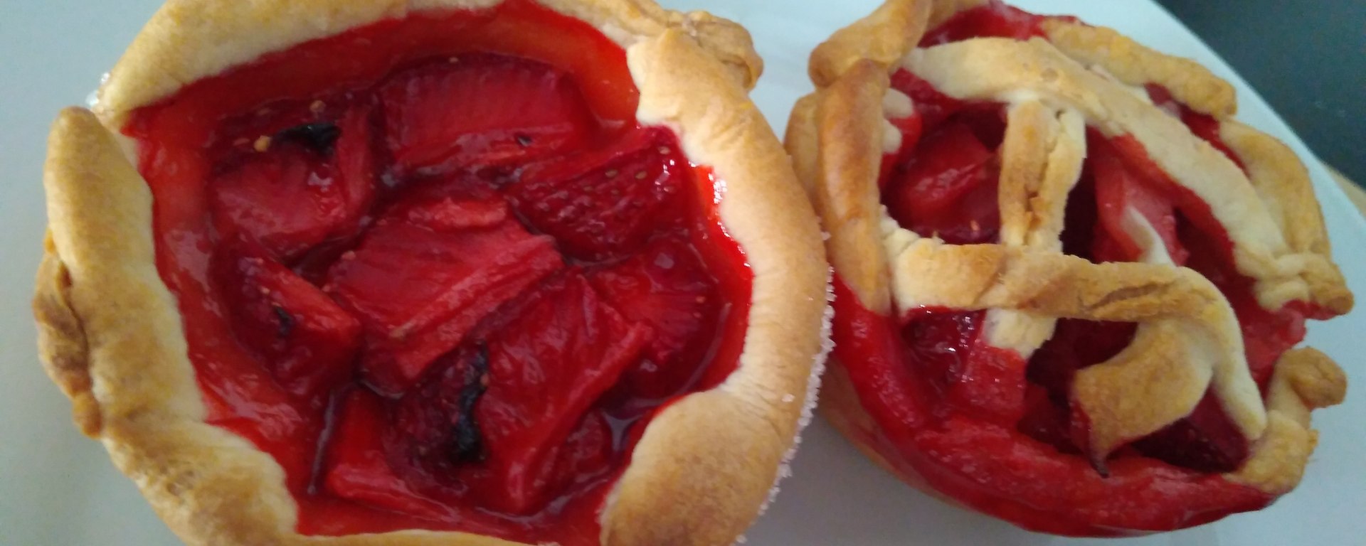 If you have pastry left, you can cut strips from that, and use these to create a lattice crust on top. I made 6 mini tarts, and added the lattice crust to 3 of them.