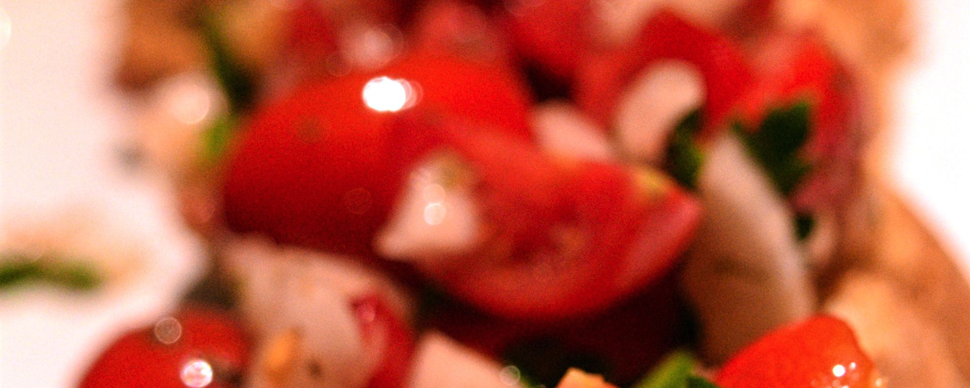 Alternatively (and this is my favourite) I leave my bruschetta mix overnight in the fridge, covered. This gives all the flavours plenty of time to settle and balance out, without making the tomato pieces too soft and mushy. The fruit has lost some of its juice too, which you mix in with the olive oil, so you have a lovely sauce (if you can really call it a sauce?)